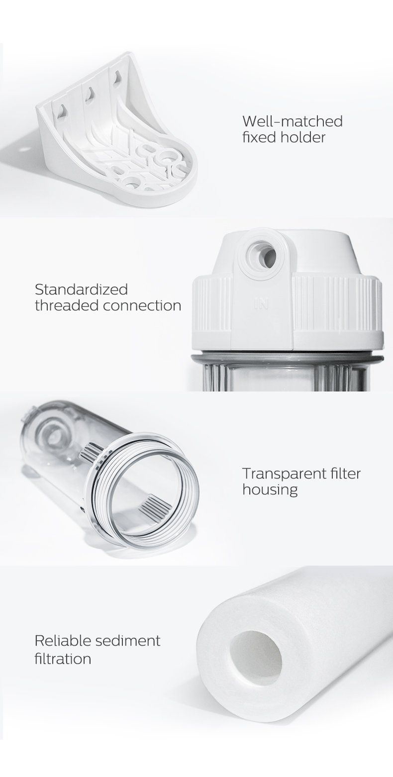 * Loại bỏ cặn lắng nhỏ gấp 10 lần so với cặn thấy được. Với khả năng lọc chính xác, thiết bị tiền lọc có thể loại bỏ cặn lắng, gỉ và các hạt nhỏ khác cỡ 5-10 micron có trong nước máy, bảo vệ máy lọc nước tại bồn của bạn.