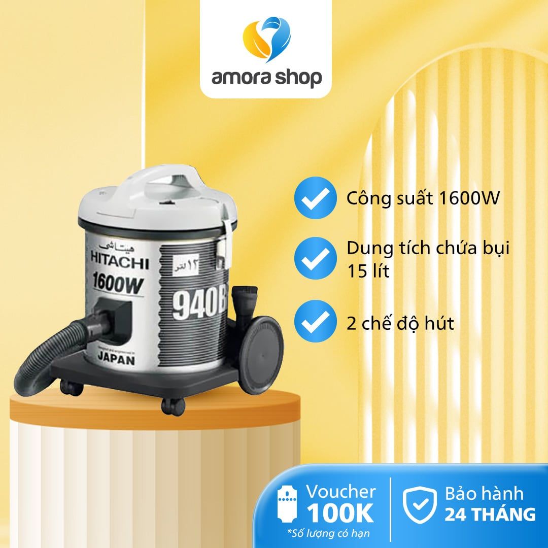 Máy hút bụi Hitachi CV-940Y (24CV-PG) có công suất 1600W với dung tích chứa bụi 15 lít, dây điện dài giúp công việc vệ sinh của bạn trở nên dễ dàng và nhanh chóng.